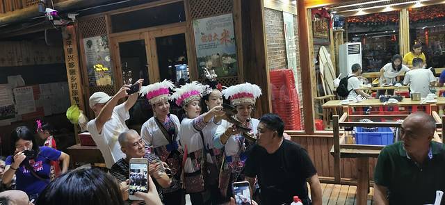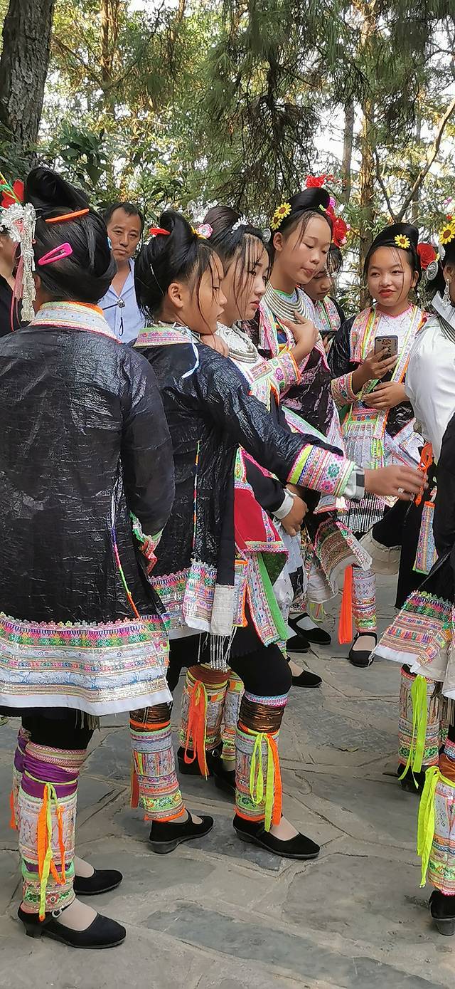 表演场的周边围坐满了来欣赏节目的游客,表演一小时基本结束,主要有芦笙表演、结婚礼仪表演、镰刀剃头、鸣枪欢迎(门口)。这里的人们崇拜树神,如同内地生女儿会酝酿女儿红的酒类似,这里生一娃就会种一棵树,在长大后离世时,树砍下作为棺材,随同人一起离开,在上面再种一颗树。在这里,一棵树就是一颗灵魂,越是古老的树越有神性。