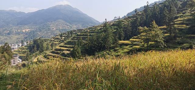 堂安梯田徒步是lonelyplanet(孤独星球)推荐的十大最值得徒步的路线之一,过了秋收的季节,稻田里都收割得差不多,山头偶有一片灿烂的稻子,很是赏心悦目,山间原野之美真好。若是再早来半个月,满山金灿灿的稻谷,估计拍的照片更有味道。