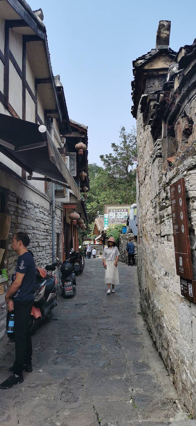 开车到古镇有近一小时,10点多到。青岩古镇不算很大,游客不少,甚是热闹,到处是青岩风味的小吃。背街与主街垂直,寻着地图的指示到背街转了转,背街窄而幽静,拍照还可以。