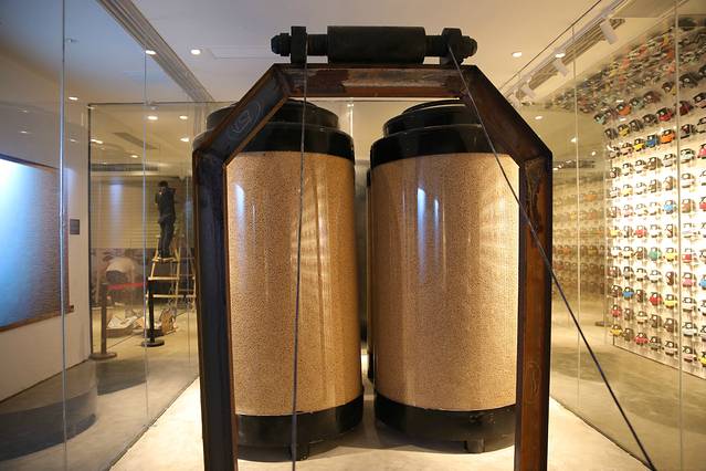 在博物馆的门口有一只巨大的公仔,如果想与她在一起合照的话,可以,但是需要排队,由于我们的时间不太充足,我就放弃了这次机会,但是刚一走进去,我就被两边的内容所吸引,他表达的的是一颗小小的黄豆,如何经过研磨调制,成为最后美味的臭豆腐。