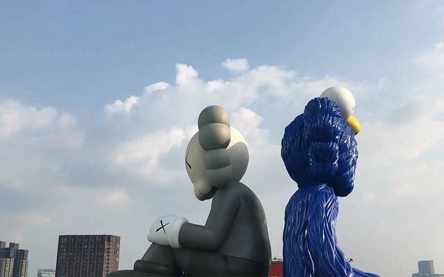 大kaws在七楼楼顶,户外的,出来首先看到是一个大白兔,意外之喜,很可爱~