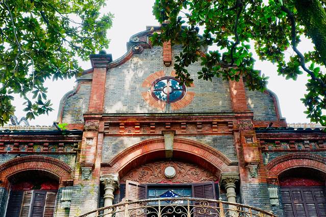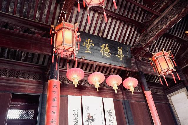 “懿德堂”内内外外一共有244间楼房,真的很大的豪宅了,进门就能看到的牌匾“懿德堂”,再向里面走就会看到很多法国文艺复兴时期建筑特色的房子。装饰上的4绝“木雕、石雕、砖雕和法国进口的玻璃雕 - 蓝晶刻花玻璃”,最特别的是穿过一个走廊,一个门口的左边是欧式建筑,右边是江南园林风建筑,两者却没有任何的违和感,是真的很特别的存在。