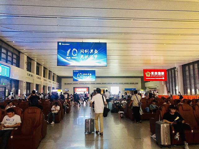 火车站目前只有一个广场,节假日会比较拥挤,平时应该还好;里面的设备都蛮新的,最棒的就是整排的按摩椅,扫码可以按摩,很放松。