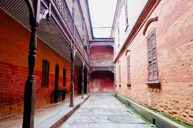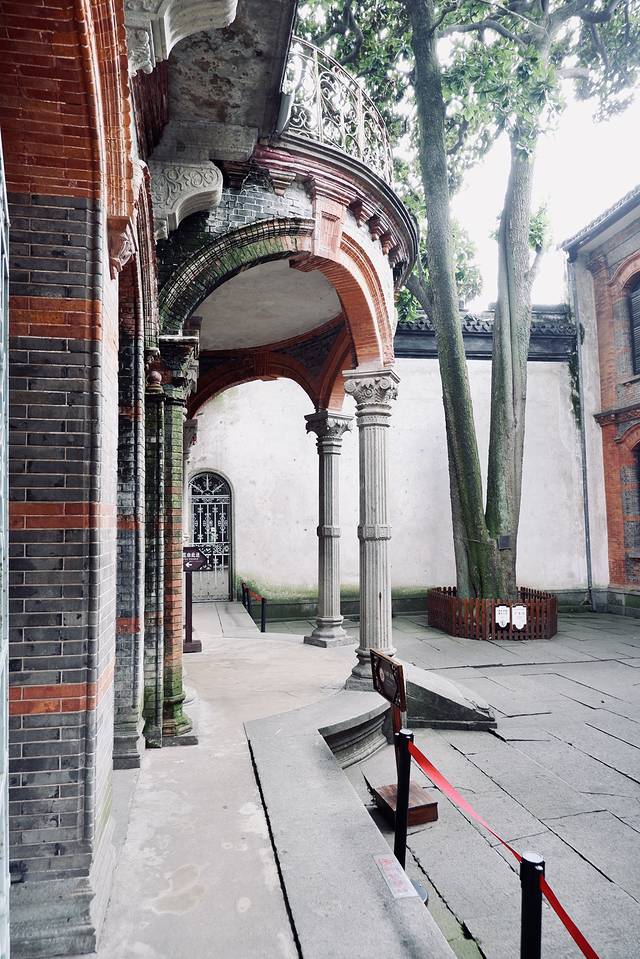 最具有特点的地方应该就是这两幢红砖砌成的西式楼房,大家俗称“红房子”还有正对着的罗马风广场和喷泉,但是抬头却能看到马头墙,装饰上也是欧式玻璃和法国进口的花纹地砖,处处体现着十八世纪西欧的建筑风格,房间摆设也是欧式家具、壁炉、门窗上都镶嵌着彩色玻璃,真的是精致的两幢洋楼。