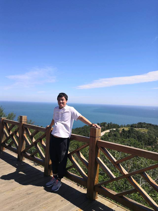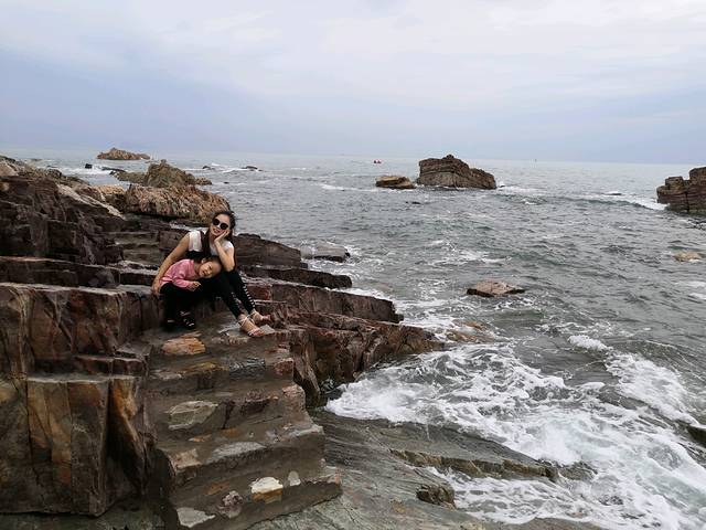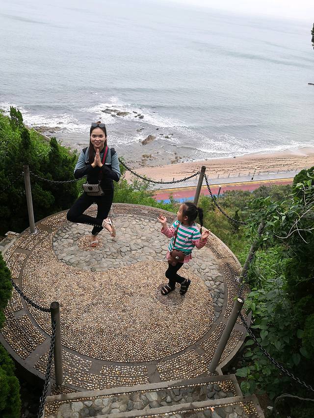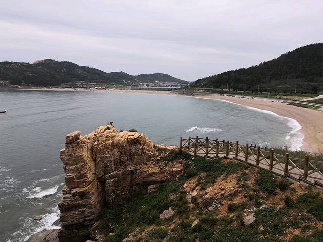 月牙湾有一处观澜亭,可以俯瞰月牙湾全景:弯弯的月牙,碧浪的水面,屹立的礁石,美到心旷神怡。