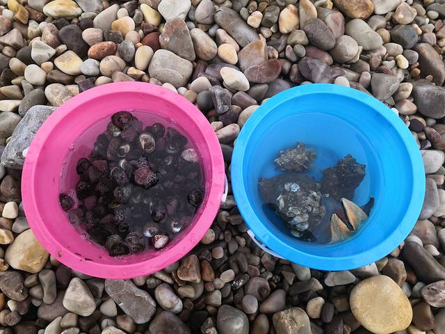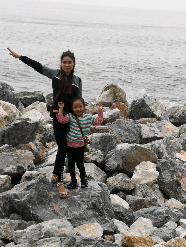 长岛这边都是石头滩,全是圆滚滚的石头,不塞脚,五颜六色的,很多奇石。