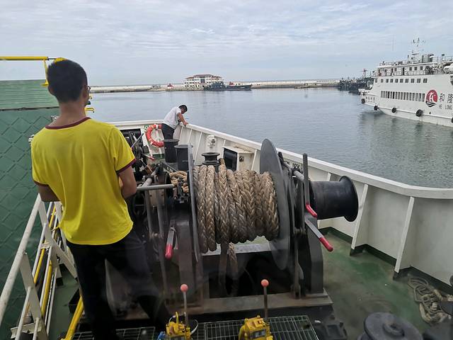 到达烟台后,在汽车站换乘发往蓬莱的大巴,之后到码头倒轮船上岛