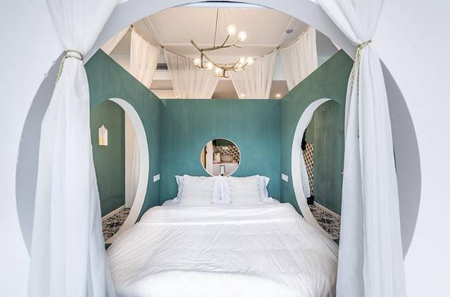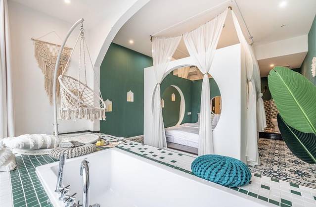 小红书上热门重庆民宿推荐【邂逅】主题房,薄荷绿的摩洛哥风情色彩搭配,高空落地窗与无敌江景搭配,随手一拍都是“网红”大片~