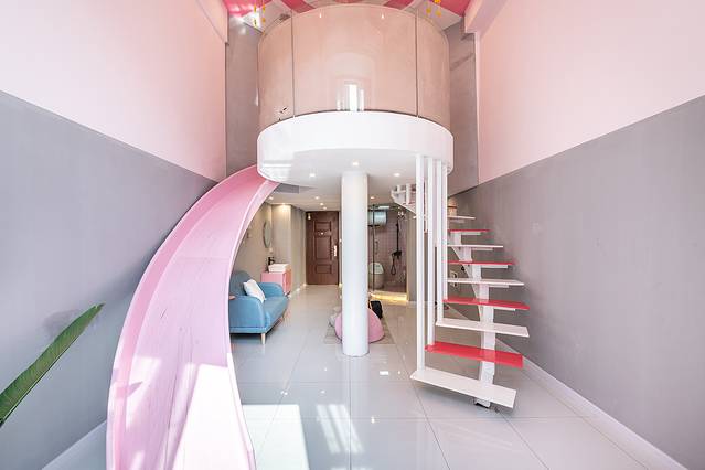 超级少女心的粉嫩色系Loft 式滑梯房,满足你的梦幻少女心。
