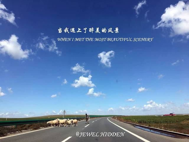 网红打卡草原区,遗憾的是没有停下来骑骑马,住住蒙古包,没有参加篝火晚会……兴奋的是开着车在草原的道路上走着,看着景听着歌,想着旅行大概就是这样吧,约着聊得来的好友,行走在路上。想着一句话:四十岁再做二十岁想做的事情就没有任何意义啦,很多事情一旦错过了就没有了,比如青春,趁着年轻多出去走走。