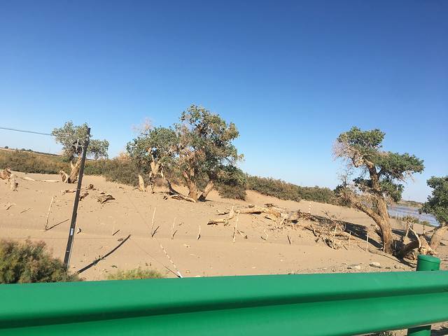 白天一直在走京新高速!晚上下榻于额济纳旗,它是隶属内蒙古自治区阿拉善盟的一个旗。本来打算去看胡杨林,可是被告知现在还不是最好看的时候,我们就在景区外转悠了一圈,晚上吃了当地特产,骆驼肉,也没吃出什么味道。采购了点牛肉干。