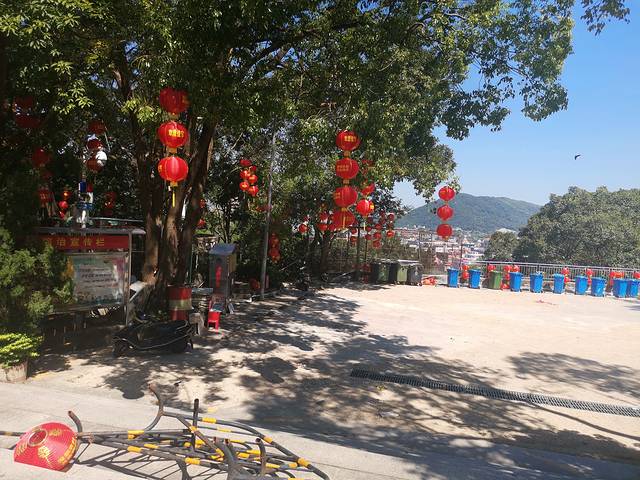 深圳观音山公园位于深圳大鹏,公园免费开放,进入能看到观音像,旁边有泉水可直接饮用。寺庙后可登高眺望整个大鹏,大概徒步20分钟左右。晴天海天一色,风景秀丽。
