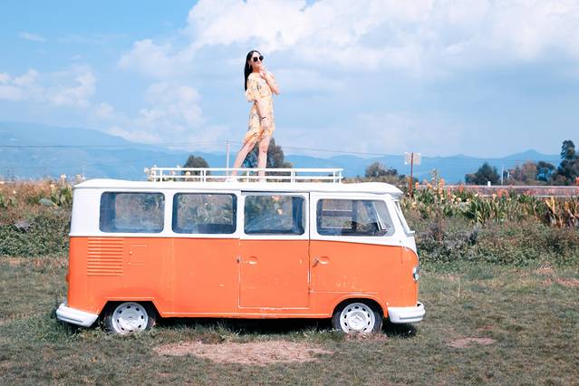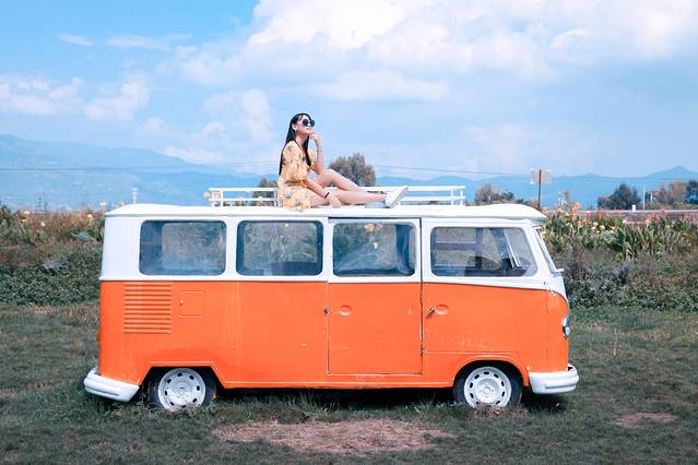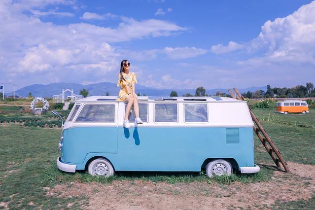 蓝色和橙色的小巴士绝对是凹造型拍照的好地方鸭~~不管是站着拍坐着拍,总之你能想到的姿势都可以发挥粗来~