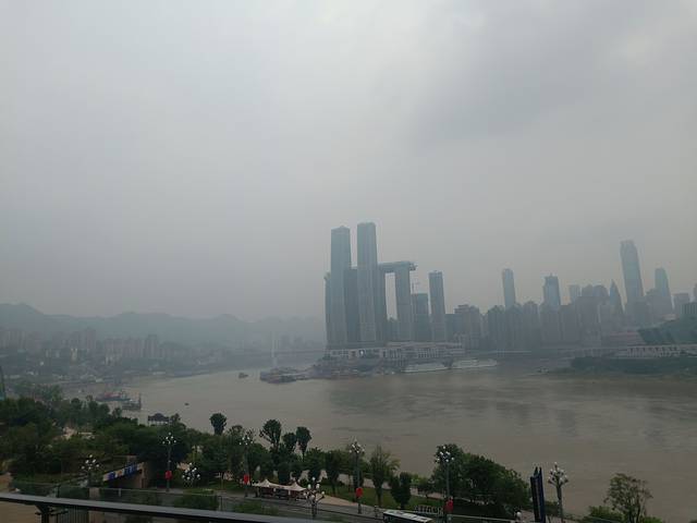 坐到长江索道的对岸之后做了一个旅游巴士,十块钱。可以带你到最佳观景台去看重庆的风景。顺便吃了个午餐。重庆的火锅太辣了。