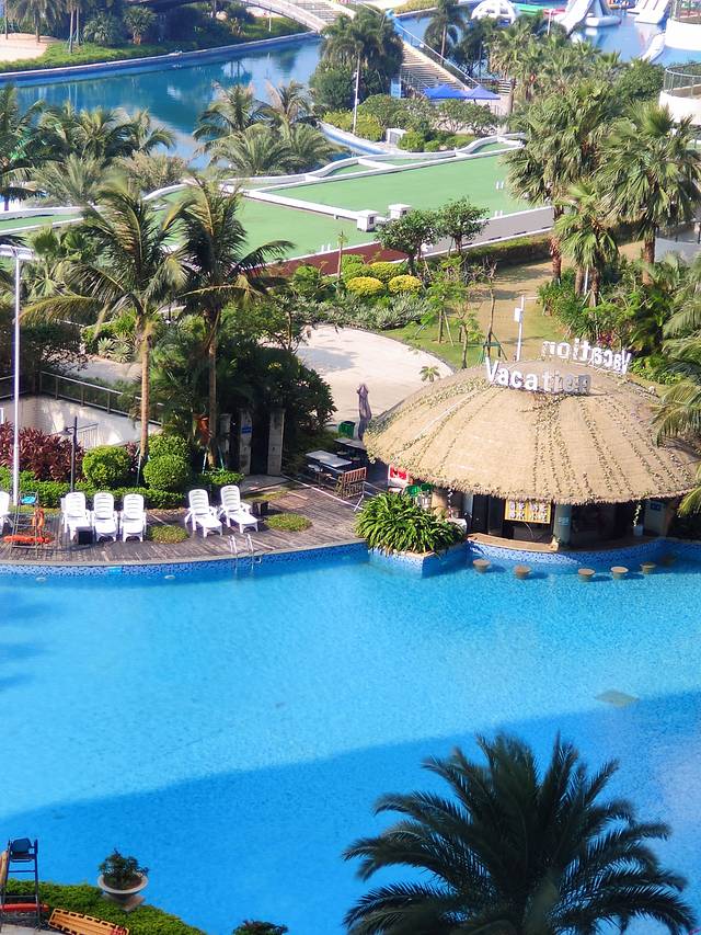 外面阳光太灿烂了,在房间休息到3点才慢悠悠的去海水游泳池玩一下水。游泳池看到有一点垃圾。