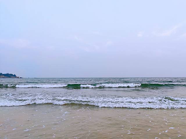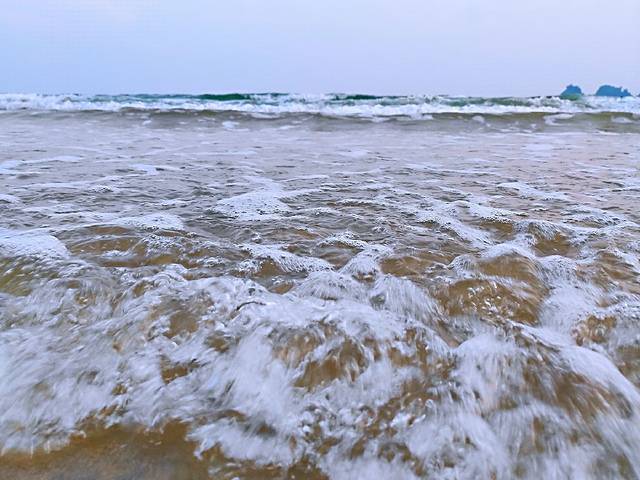 在沙滩散步,从免费沙滩往收费沙滩那走,越远浪越大,不要太靠近海。
