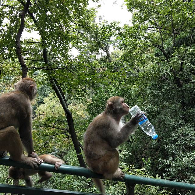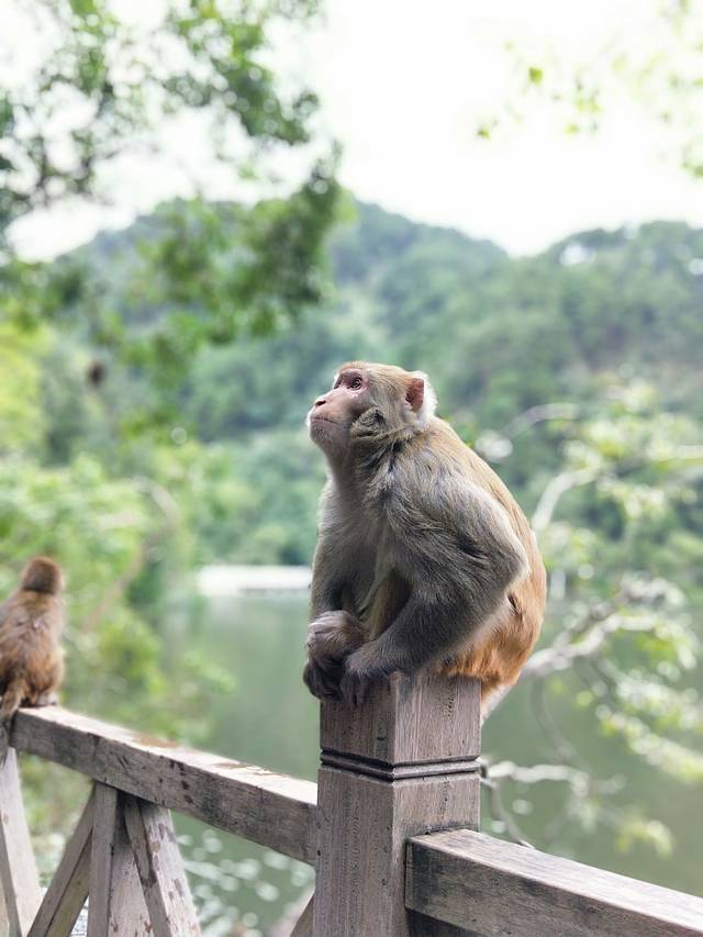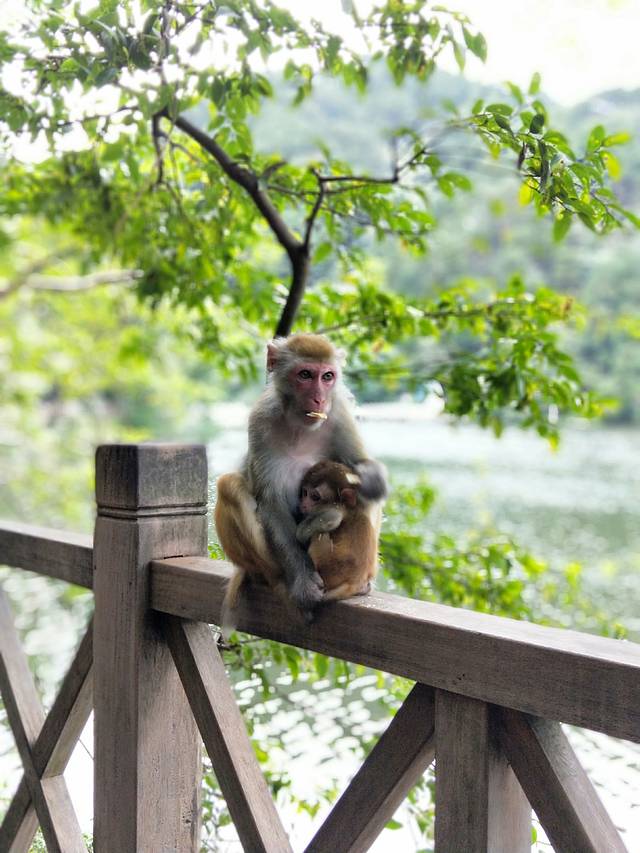 9月20日,行程里最后一天,这一天留在贵阳,上午睡到自然醒。今天的行程是黔灵山公园、甲秀楼和花果园湿地公园。到黔灵山公园已经十一点多(门票超便宜5元,我们是异地专享只花2.5元)。黔灵山最大的特色就是野生猴子,成群的猴子随处可见。这些猴子有大有小,有些还带着猴仔出来,并不怕人,许多游客带着食物专门喂猴子。这里的猴子都很有灵性,自己会嗑瓜子、剥糖块、剥香蕉、喝矿泉水。不过有时候也很凶,看到游客手里带食物,或则翻包包的时候,猴子就会上去抢。