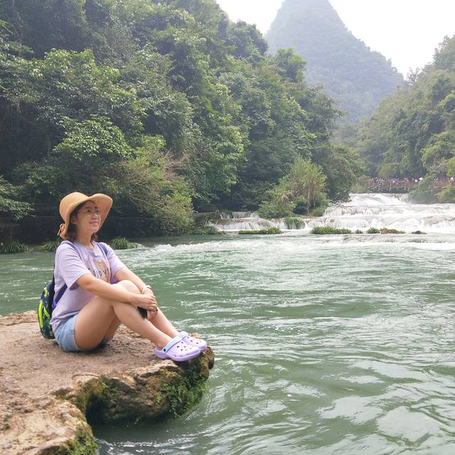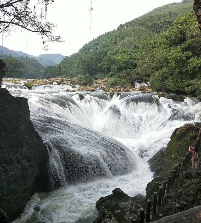 我们坐摆渡车前往第一站,陡坡塘,是西游记当中唐僧师徒四人牵马过河的实景拍摄地是黄果树瀑布群中瀑顶最宽的一个瀑布,没有其他景色,四十多分钟就可以出来