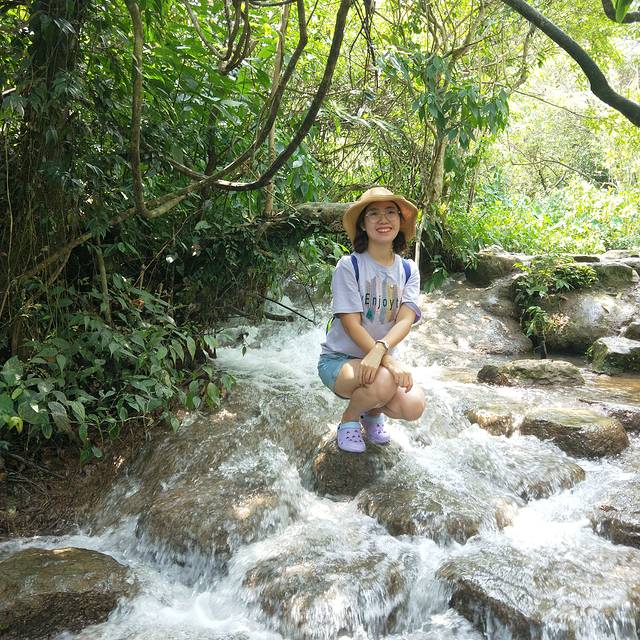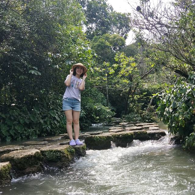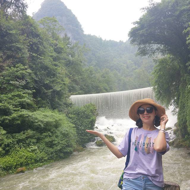 我们选择从西门入口进去,坐上观光车走了几百米便开到了第一站卧龙潭—四周有堤坝包围,潭面平静如镜。清潵的潭水,环绕的竹林。环形瀑布一弯瀑布,如黄色的篦梳,金钗玉簪一般,华美而高贵!赏完卧龙潭后可以玩卧龙漂流直达鸳鸯湖(极力推荐)真是一段超酷的体验,自助漂流,我和老公一人一根竹干,便可以划走皮筏。湖面只有俩三只玩漂流的皮筏,所以很安静。可以轻松的欣赏蝴蝶嬉戏,阳光透过树林洒落在湖面,波光潋影,树干上的光影不断晃动,很是美妙!途中有三个陡坡滑倒,每到一处老公都是全身湿透(因为老公在前面)我躲他背后只湿一点点😜。就这样大约40分钟我们漂到鸳鸯湖站。这里也是玩游船的,我们在游船码头看了看景色一般,所以没有逗留。