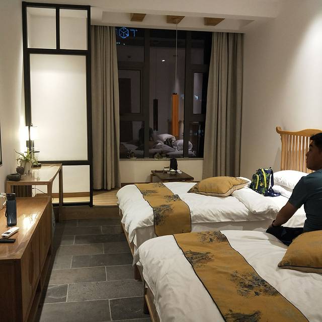 9月14日下午四点半白塔机场飞往贵阳龙洞堡机场。抵达目的地是7点多。下飞机后,便给酒店打了电话,没等几分钟就去接了我们。这一天是住在机场附近,因为租车的地方也在机场附近。是一间名叫云上小筑的客栈。新中式风格。是我俩喜欢的调调。我们发现这里有一个特别的地方,就是酒店的电梯6楼以下就是负3负5。没有一楼。大堂是在负三,我俩在想明明是从1楼进的大堂。为什么是负三,直接搞晕……后来出去找饭店才知道,贵阳都是山路,楼都是在山沟沟里建的。所谓的平地上不一定是一层。附近找了一圈也没发现什么好吃的饭店,随便吃了一些炒菜便回去休息了。