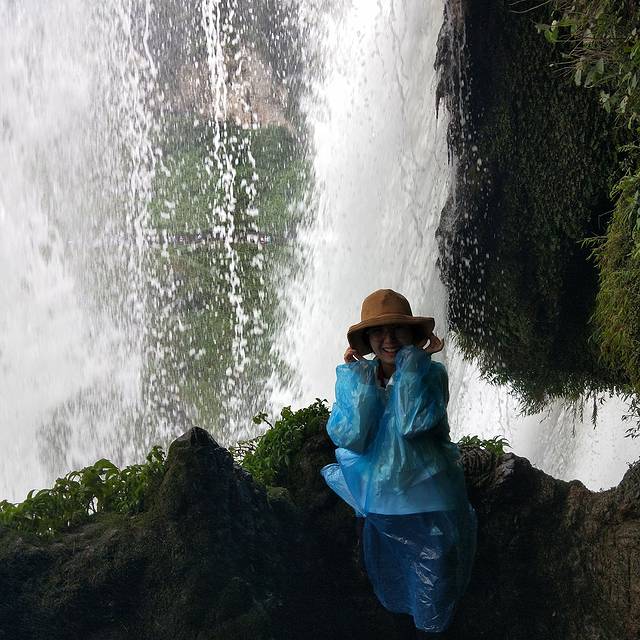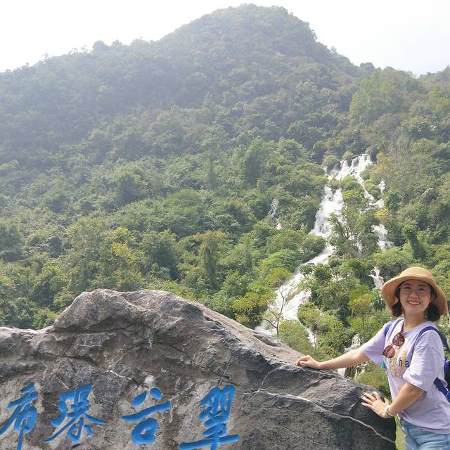 我们沿着蜿蜓的石级小路往下爬,去钻神奇的水帘洞。越近瀑布的边缘,越能感受它的神奇,在一片青山环抱的峡谷中,从天而挂,如银如练,如丝如雪,如肌如肤,如雨似雾,仰望而去,天外之水一般,从高山顶部倾泄而下,从山顶到山腰,水流撕成几十条绢布一般丝丝缕缕直泄而下,流金泄银落进山下的巨潭之中,溅起层层水雾,水声隆隆!此景此境,怎不让人陶醉?陶醉的我,久久不舍离去!我和老公不停地录视频,不停地拍照,真心想把这世界绝妙的美景带回家!