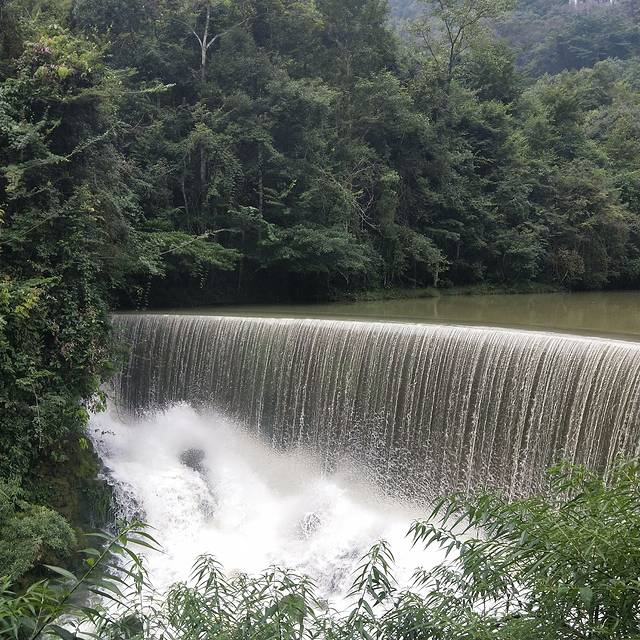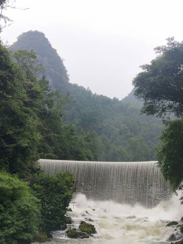 走了一段路,我们看到在响水河的左边有一个中型的瀑布,水拍打着石头溅起一层层水雾,这里有好多游人拍照,所以我们没多停留。