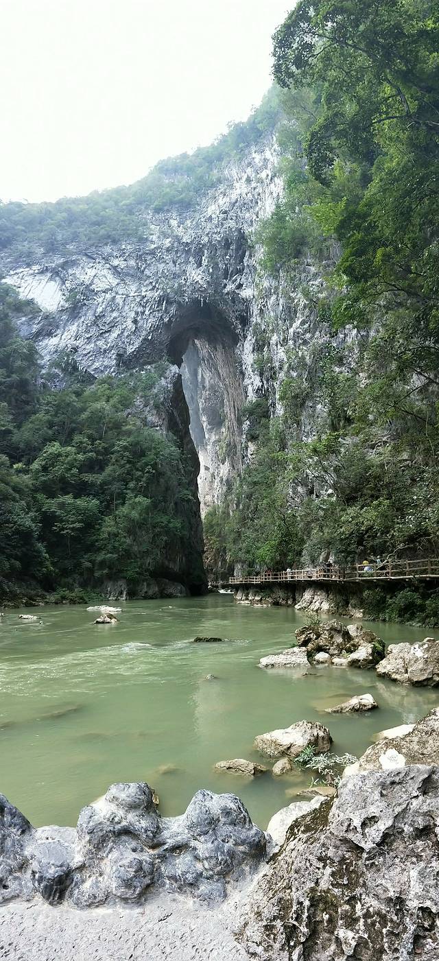 从小七孔出来,我们前往西门口的大七孔景区。如果说小七孔是秀丽,那么大七孔就是壮美,因为从小七孔出来已经很晚了,所以我们利用一个小时时间游览大七孔。沿山边上的步行石路,一直走到天生桥,大七孔的峡谷风光,诡谲,惊悚。真让人感叹不已!小七孔和大七孔好似美女与野兽一般。