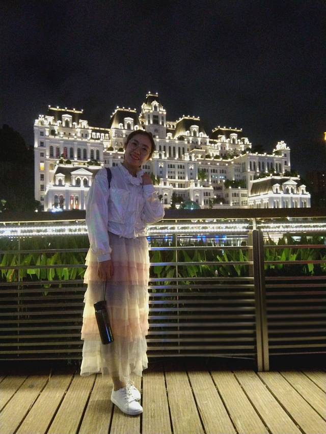 最后一站—花果园,我和老公打算晚上住到花果园商业区,正好可以欣赏到白宫的夜景。我发现老公在市区开车非常紧张,贵阳市区的路很窄,高架桥都是麻花型的,走错一个路口可能要绕几公里才能返回去😍所以老公开车相当警惕。如果说甲秀楼见证的是贵阳的历史,那么高楼云集的花果园商务区,见证的是贵阳的现代化。花果园白宫依山而建像欧洲城堡式宫殿。外边看上去富丽堂皇,在夜色下灯光璀璨,倒映在水里实在很梦幻。老公嫌这里太闹腾,所以看完白宫的夜景后,我们开车驱往机场附近的酒店,为了方便明天返程。