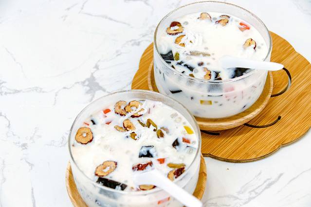 我们当时是一部分自己去第一场市场买来海鲜,来到店里加工,一部分店里的特色菜是直接餐厅点餐,餐前小食,清补凉必点,这里的清补凉和平时所吃的味道有些不同,椰味儿多了些儿奶香,味道更加浓郁,里面的果肉用料更是十足,满满的都是料,清补凉里面的红枣是脆的,一定要提前吃,味道超赞,如果泡太久,会变软。