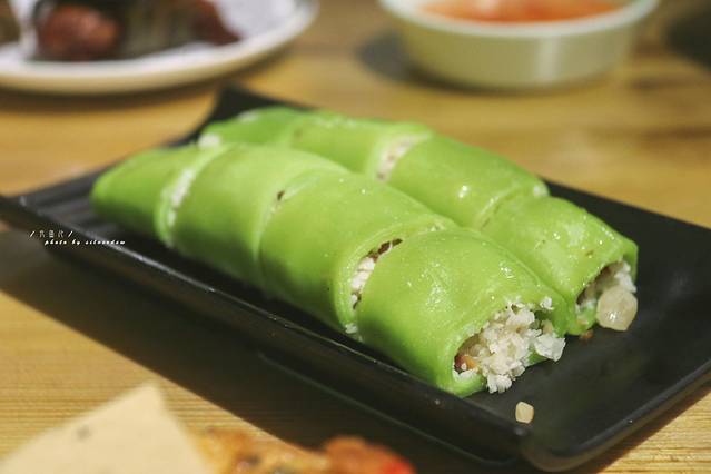 香兰椰丝卷,个人比较喜欢的甜点,外面用香兰叶汁作为辅料,清香不腻,里面是椰丝配有花生,入口香滑,淡淡的椰香中带有浓浓的花生香。