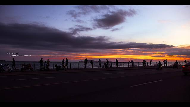 椰梦长廊在美丽新海岸小区对面的那段桥上,是观赏落日的最佳地点,桥上人群映着日落的余晖,形成了最浪漫的剪影。