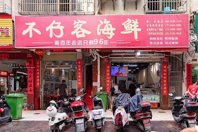 虽有偶尔宰客现场,但稍微防范便会避免此现场,这次来到三亚第一场市场,直接选择了一家名为“不仔客”(不宰客)海鲜的餐厅,选择他的原因,直接是因为他的名字和他的标语“距百年老店还剩96年”,对这家店的鬼才文案产生了兴趣。