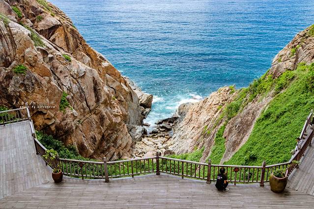 分界洲岛不大,但游玩景点很多,从这里上去,便是观海长廊,也就是这里的最高点,一览无余的海景乍现在眼前,傍晚,安静的坐在这里,看着潮起潮落,听鸟语花香。