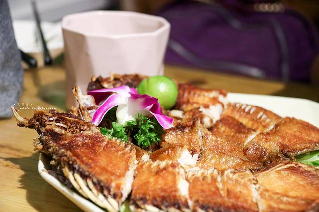 黎家冲浪鱼,一道非常有特色的菜肴,是黎族人的一种特色菜,在当地一般是是以烧烤为主,而这道是以油煎为主,但油而不腻,外面一层香脆可口,里面鱼肉鲜嫩,还有配有特有的辣酱,这是一份单人套餐,配有米饭和汤。