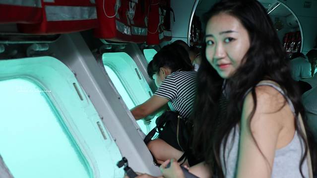 半潜艇基本上不用担心因为人多拥挤看不到海中的生物,因为在半潜艇中是每个人一个座位,每个座位前面都有一块观赏海底生物的“窗户”,可以清楚看到海中的水母,海蛇,珊瑚,热带鱼,海胆等生物。