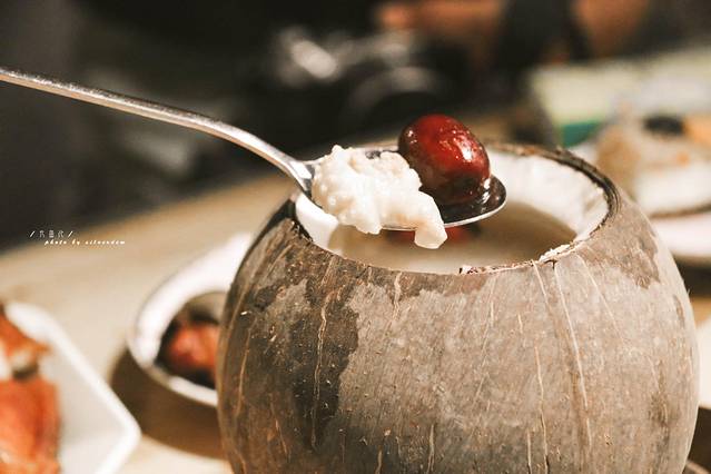 椰子炖鸡汤,女生超爱的一道汤品,既有鸡汤醇厚的香味,又有清爽的椰香,虽然看上去不太起眼,但用料却是十足,鸡肉直接放进整个的椰子里面,在开始放入锅中蒸熟,让鸡肉的香味完全浸入椰子汁,养生神器。