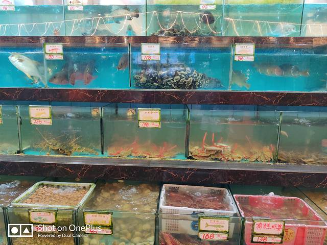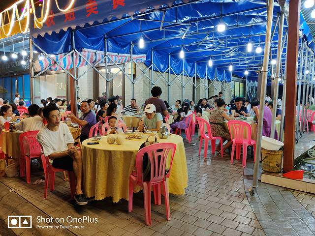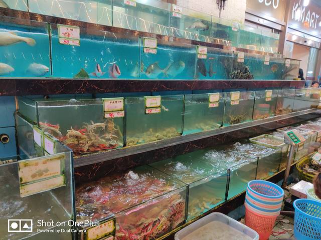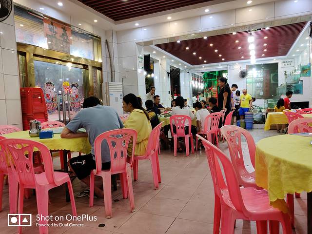 这边很多海鲜,但是最旺是这间,非常大,有室内室外,室外稍微热一点,室内有空调,位置很多,多人的话要等位,但不是拿号,自己去找空位等位,大排档的环境