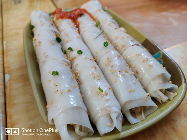 【猪肠碌】就是肠粉里面加了豆芽吧,太干了,皮很薄,里面爽口,特别是挺特别,但觉得一般般,没什么味道,点辣椒酱好吃