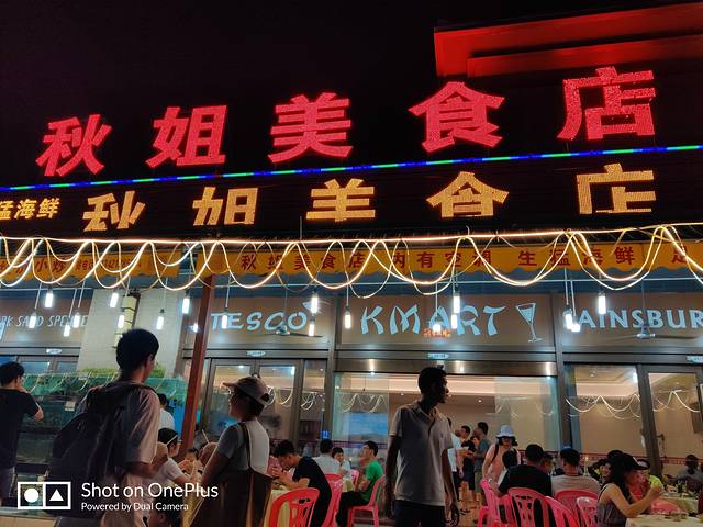 在对面租摩托车玩,店主推荐过来的,整条街都是吃海鲜,很多选择,没有特别旺的