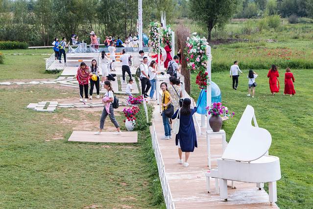 候鸟湾其实是一片巨大的花圃,从进门开始便是各种盛开得十分旺盛的鲜花,景区为了吸引大家拍照也是下了功夫,各种道具、背景板放在了花田之中,找好角度随便一拍都是美照;一圈玩下来之后发现这里特别受女孩子欢迎,毕竟都是自拍、他拍停不下来的状态。
