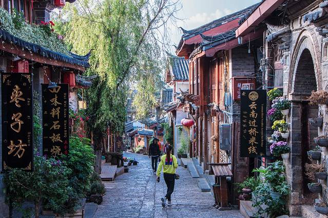 丽江古城不让进车,所以大家在预订酒店的时候最好看下其所在位置距离古城口有多远,行李箱在古城内的青石板上路上基本拖不动,一路提着过去还是比较困难;当然,你也可以选择叫一个古城内的运输自行车,可以拉行李送到酒店门口。