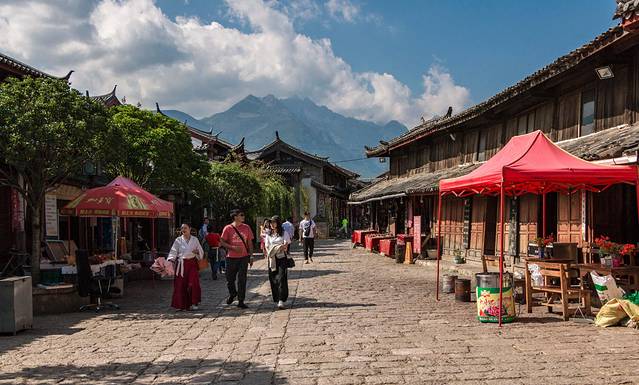 如果说大研古城给你的感觉太过于商业化、白沙古镇给你的感觉又太原生态,那么来束河古镇就是最好的选择,这个地理位置介于大研和白沙之间的古镇,即没有丽江的全盘商业化,但又比白沙多了一份人气,至少吃喝住行玩什么都有,但消费又不会太高、晚上也不会很吵~