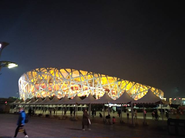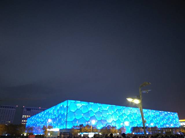 鸟巢跟水立方据说夜景不错,所以早早吃了晚饭过来看,只是这天真的是冷啊,所以只拍了几张照片就溜回酒店了。晚上的灯是在六点亮起来的。
