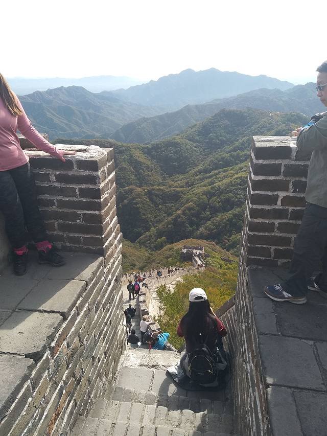一般爬长城大家都知道八达岭长城,出发前我也纠结了很久,到底要去哪个长城,最后还是选择了慕田峪长城,据说这边秋天景色好,人少。事实证明没选错地方。来慕田峪有专门的巴士_慕巴士直达的,车程一个半小时左右,中间不停车,而且每辆车配有一个导游,去的路上导游会介绍长城的历史,还会帮忙买票,并介绍上长城的几种方式,到了长城以后,导游会送到检票口,然后各自登长城。下午回城还会给介绍一些好玩的跟好吃的。