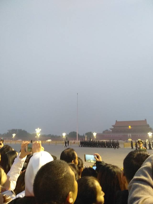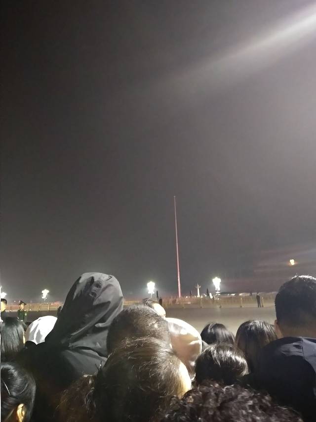 为了看升旗特意选择了比较近的宾馆,早上四点半起床出门应该来得及,事实证明是我太天真。等到了才发现广场上已经到处都是人,昨天看好的位置根本挤不进去,只能是哪里有点空隙就站哪里了。