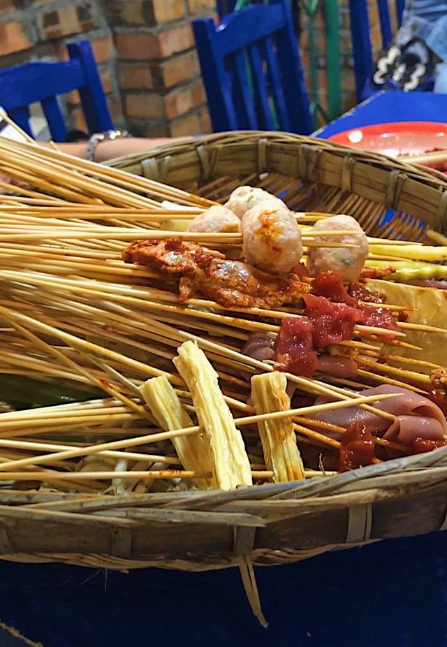 不同于我们熟知的麻辣烫,这里的麻辣烫特指的是串串,在我们疲惫了一天还是感谢队友的舍命陪吃串的革命情谊(排队两个小时,此处还要鸣谢饭店门口播放的夏洛特烦恼)。
