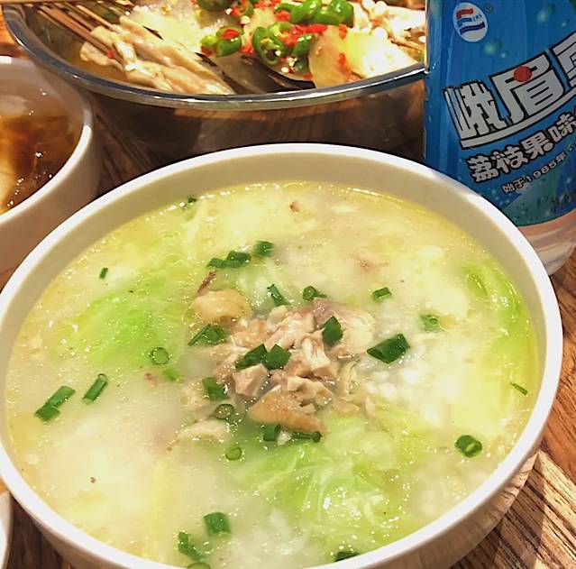 鸡汤熬煮的米粥,配上脆爽的头菜,在食辣的这几天是对胃袋最好的滋养。