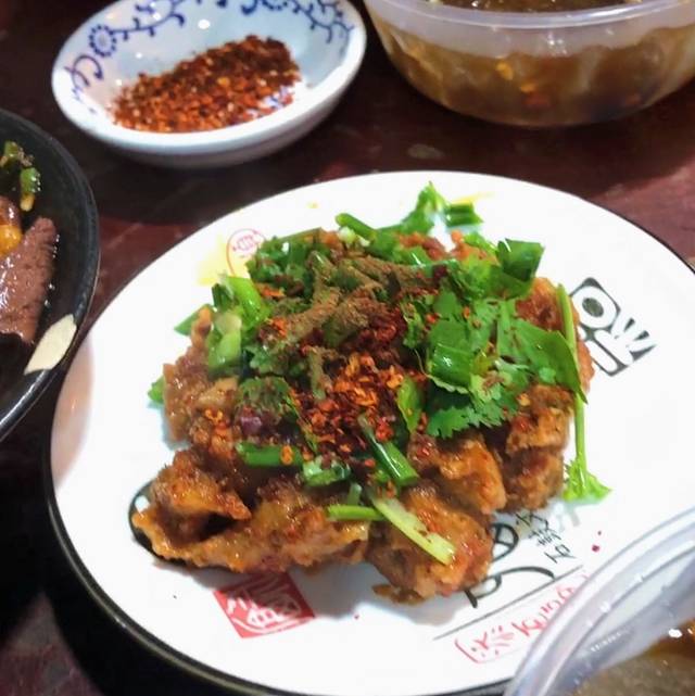 等我们杀到小龙坎,才体味到天府之国夜晚的热闹,整个大堂座无虚席,甚至门外还有排队的食客,丝毫感觉不出来这座城市的午夜应该有的安静。还好我们三个人足够幸运,恰好有一小桌。