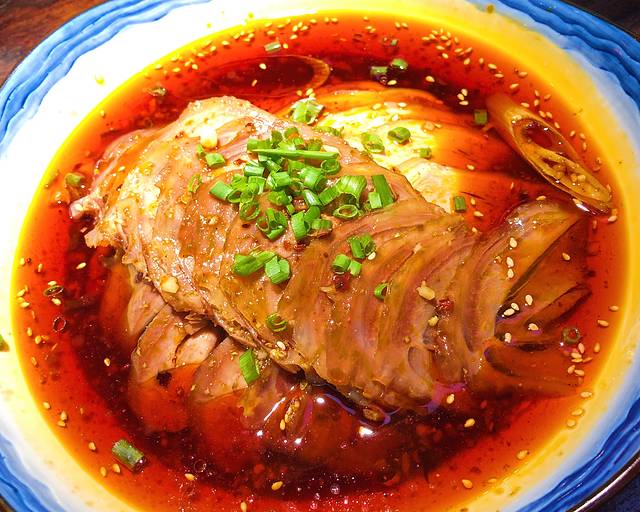是红糖卤过的整鸭,四川人真的把红糖运用到了极致,鸭皮酥香酥香的,鸭肉又软嫩多汁,每一口被红糖滋润的鸭子都让你唇齿留香,而且完全不会太过甜腻,也不会咸的的过分,是糖分与盐巴完美的演绎手艺。