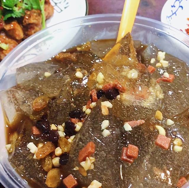 不同于红糖冰粉,这家更像是醪糟冰粉小圆子,冰冰甜甜的略带酒精发酵的清冽,是一种不同于天府传统的美味,原创三鲜,有点点题了。